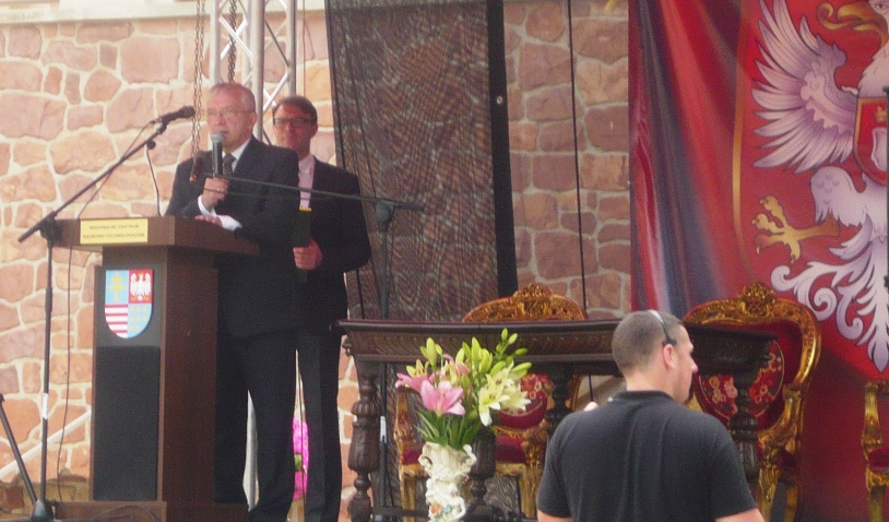 Podzamcze Chęcińskie. Na radosną wieść o Wiedeńskiej Victorii, na przywitanie wojsk króla Jana III Sobieskiego, wybudowano tu barokową bramę w formie łuku triumfalnego. Podczas plenerowej imprezy w której wziął udział poseł Krzysztof Lipiec, promowano Szlak Jana III Sobieskiego, wytyczony przez trzy województwa: świętokrzyskie, podkarpackie i lubelskie. Była to doskonała okazja, aby przywołać na pamięć Chwałę Polskiego Oręża z 1683 roku, kiedy to wojsko polskie dowodzone przez Króla uchroniło Europę przed turecką zagładą. "Dzisiaj Europa i Polska potrzebuje męża stanu na miarę Jana III Sobieskiego. Tak jak Sobieski przed 330. laty ratował chrześcijańską Europę tak i dzisiaj europejskie dziedzictwo jest zagrożone i wymaga szczególnej troski. Polska może tu odegrać znaczącą rolę" - powiedział min. poseł Krzysztof Lipiec do zgromadzonych na zamkowym dziedzińcu gości pleneru. Słowa uznania należą się panu Marcinowi Perzowi dyrektorowi Świętokrzyskiego Centrum Naukowo - Technologicznego w Podzamczu Chęcińskim, który zorganizował ten historyczny plener.GLORIA VICTIS |