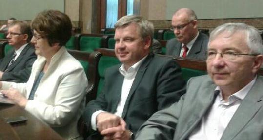 Warszawa. W dniach 22 - 24 maja 2013 roku, poseł Krzysztof Lipiec uczestniczy w 41 Posiedzeniu Sejmu Rzeczypospolitej Polskiej. W pierwszym dniu obrad Sejm przeprowadził pierwsze czytanie poselskiego projektu ustawy o Narodowym Programie Zatrudnienia, który ma na celu stworzenie rozwiązań prawnych wspierających tworzenie nowych miejsc pracy oraz rozwój przedsiębiorczości ludzi młodych. Program ma zaktywizować ekonomicznie przede wszystkim małe miasta i wsie. Program przewiduje stworzenie 1 mln 200 tys. miejsc pracy w latach 2014 – 2023, a jego adresatami są osoby do 35. roku życia. Projekt zobowiązuje Radę Ministrów do szczegółowego określania programu wykonawczego na każdy rok realizacji programu. Projekt tworzy tzw. instytucję minipracy, tj. pracy wykonywanej na podstawie umowy o pracę zawartej na czas nie krótszy niż 2 lata i nie dłuższy niż 5 lat w niepełnym wymiarze czasu pracy. Projekt reguluje także m.in. zasady udzielania pożyczek i kredytów dla ludzi młodych, by umożliwić im podjęcie działalności gospodarczej. Program przewiduje preferencje podatkowe dla pracodawców zatrudniających ludzi młodych w małych miastach lub wsiach i spełniających określone kryteria. Projekt wprowadza pojęcie gminy zdegradowanej ekonomicznie. Zatrudnienie osób z tych obszarów przez pierwsze 12 miesięcy ich pracy wiązałoby się z subsydiowaniem przez budżet państwa połowy kosztów ponoszonych przez pracodawców na ubezpieczenia emerytalne i rentowe. Wprowadzone byłyby również specjalne stypendia edukacyjne dla młodzieży w wieku 16 – 25 lat zamieszkałej w gminach zdegradowanych ekonomicznie. Program wprowadza też na tych terenach możliwość finansowania praktyk szkoleniowych z budżetu państwa. Projekt tej ustawy został przygotowany przez Klub Parlamentarny Prawa i Sprawiedliwości. Poseł Krzysztof Lipiec jest współautorem tegoż projektu. Zbierając w sejmowej debacie głos poseł Krzysztof Lipiec krytycznie odniósł się do wniosku PO o odrzucenie w pierwszym czytaniu tego projektu. Powiedział o sytuacji na rynku pracy w województwie świętokrzyskim. Zaapelował równocześnie do posła Mirosława Pawlaka z PSL o przekonanie swojego Klubu, aby ten nie ulegał presji PO i udzielił poparcia projektowi tej ważnej dla bezrobotnych ustawy.KONFERENCJA PRASOWA |