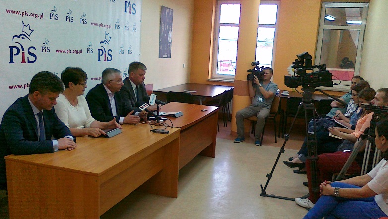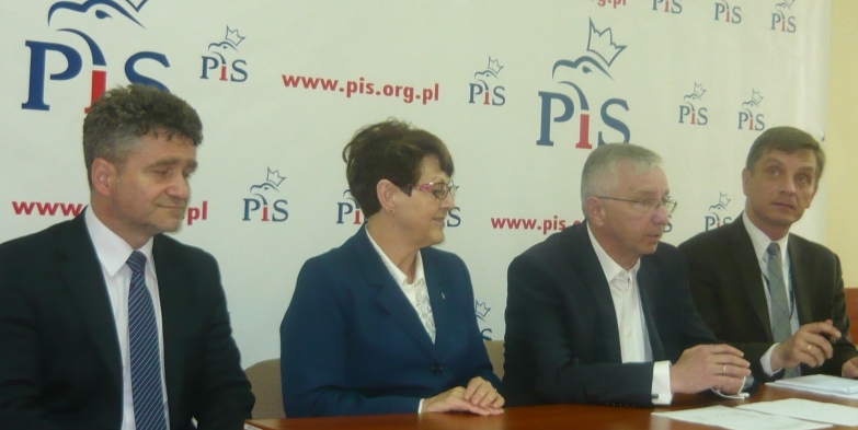 Kielce. Na konferencji prasowej przed Świętokrzyskim Okręgowym Zjazdem Prawa i Sprawiedliwości z dziennikarzami spotkało się ścisłe kierownictwo partii w okręgu. Poseł Krzysztof Lipiec - prezes, senator Krzysztof Słoń - wiceprezes, Andrzej Pruś - sekretarz i poseł Maria Zuba - skarbnik. Dziennikarzy poinformowano o Zjeździe Okręgowym PiS, który odbędzie się 9 czerwca 2013 roku. Zjazd Okręgowy PiS rozpocznie się Mszą Świętą o godz. 11.00 w Bazylice Katedralnej sprawowanej w intencji Ojczyzny. Obrady będą miały miejsce w Centrum Kongresowym Targów Kielce. Poseł Krzysztof Lipiec poinformował o najnowszych wynikach badań poparcia dla partii politycznych w świętokrzyskim. Według Pracowni Informacji Społecznej wygrywa Prawo i Sprawiedliwość z 39% poparciem. Parte obozu rządzącego poniosły klęskę, gdyż dla PO odnotowano wynik 21% i ponad 7% dla jej koalicjanta PSL.PRZED KONGRESEM SPOTKANIE W KOŃSKICH |