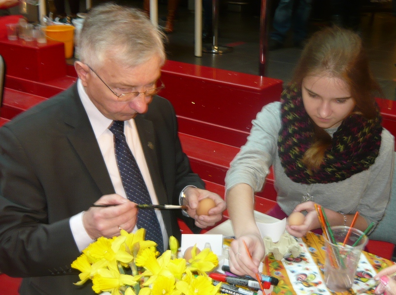Kielce. Kilkadziesiąt znanych w regionie osób wsparło akcję "Malowana niedziela” w Galerii Echo organizowaną przez "Echo Dnia" i Galerię Echo pod patronatem Radia Kielce . Pośród nich był poseł Krzysztof Lipiec ze swoją córką Magdą. Do chorych dzieci trafi ponad 6 tysięcy złotych. Poseł Krzysztof Lipiec z Magdą namalował dwie pisanki. Jak na polityka przystało dzieło przez niego dokonane nosiło też polityczny ładunek. Jajko zostało pomalowane w barwach narodowych i na białym tle w granatowych barwach zostało po prostu podpisane "PiSanka". Ponad to stwierdzić należy, że pan poseł dosyć słono bezprzetargowo zakupił pisankę wykonaną podczas tej sympatycznej "malowanej niedzieli" i przekazał ją do dalszej licytacji.