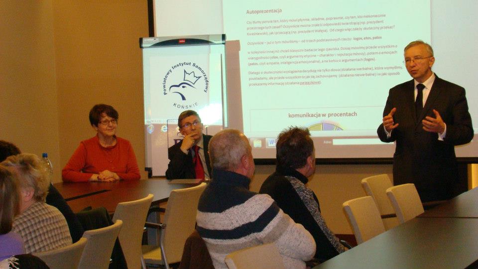 Końskie. Każdy polityk musi umieć się zaprezentować przed publicznością, przed mediami, przed wyborcami. Aby zrobić to skutecznie trzeba poznać "Sztukę autoprezentacji". Jak skutecznie przekonać do swoich racji, jak obalić twierdzenia przeciwnika, jak sprawić, żeby osiągnąć zamierzony efekt - oto główne założenia Sztuki autoprezentacji. Janusz Knap, który wygłosi wykład inauguracyjny, ma kilkudziesięcioletnią praktykę dziennikarską, był prezesem Radia Kielce i wieloletnim dziennikarzem prasowym, redaktorem naczelnym kilku gazet, obecnie jest dyrektorem Wzgórza Zamkowego w Kielcach i wykładowcą Uniwersytetu Jana Kochanowskiego, na którym prowadzi zajęcia ze studentami filologii polskiej w ramach przedmiotu "Językowe kształtowanie wizerunku" - powiedział poseł Krzysztof Lipiec zapowiadając inauguracyjny wykład w Powiatowym Instytucie Samorządowym w Końskich. W sesji inauguracyjnej uczestniczyła pani poseł Maria Zuba, wicestarosta konecki Andrzej Lenart oraz burmistrz poprzedniej kadencji Krzysztof Obratański.