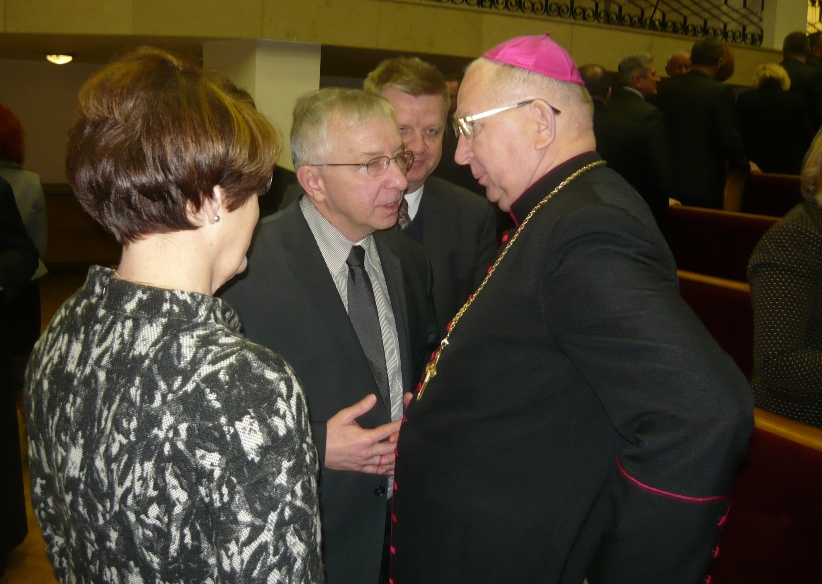 Kielce. Na zaproszenie Księdza Biskupa Kazimierza Ryczana Ordynariusza Kieleckiego w auli Wyższego Seminarium Duchownego spotkali się parlamentarzyści i samorządowcy Diecezji Kieleckiej. Kierując życzenia do zgromadzonych Ksiądz Biskup dokonał podsumowania członkostwa Polski w Unii Europejskiej. „Jest tolerancja dla świeckości, nie ma tolerancji dla wartości chrześcijańskich. Europa zamknęła się na chrześcijaństwo" - mówił min. bp Kazimierz Ryczan. Poseł Krzysztof Lipiec wyraził wdzięczność Księdzu Biskupowi za troskę o sprawy publiczne, za zaproszenie na opłatkowe spotkania i za uzmysłowienie osobom odpowiedzialnym za życie publiczne zagrożeń związanych z brakiem tolerancji dla Chrześcian. "To dobrze, że samorządowcy i parlamentarzyści gromadzą się wokół swojego Pasterza wsłuchują sie w Jego głos umocowany w Katolickiej Nauce Społecznej, która winna być wyznacznikiem dla tych, którzy odpowiadają za sprawy publiczne" - powiedział min. poseł Krzysztof Lipiec składając w imieniu posłów Prawa i Sprawiedliwości życzenia dla Pasterza Kieleckiego Kościoła i samorządowców. W spotkaniu tym uczestniczyli posłowie Maria Zuba, Jarosław Rusiecki, Andrzej Bętkowski oraz senatorowie Beata Gosiewska i Krzysztof Słoń.