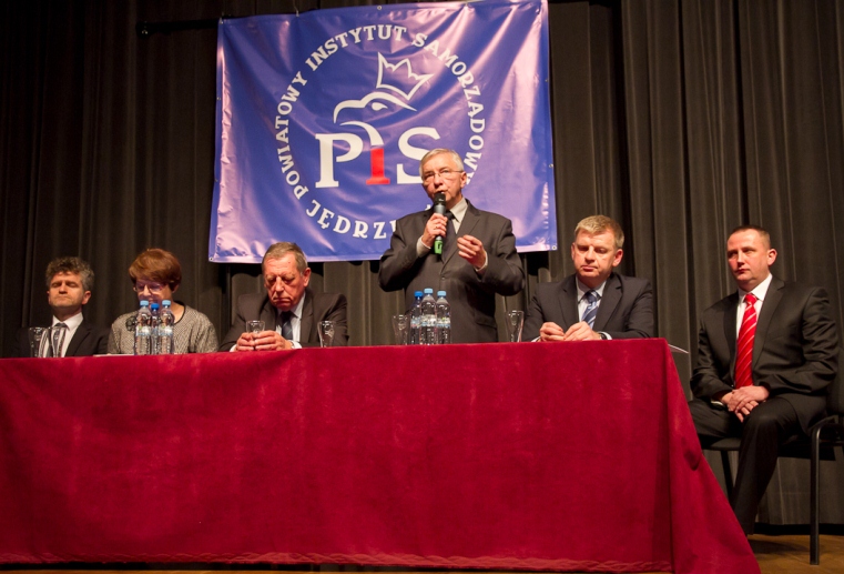 Jędrzejów. Poseł Krzysztof Lipiec wział udział w inauguracyjnej sesji Powiatowego Instytutu Samorządowego w Jędrzejowie, który został powołany z inicjatywy radnego powiatu jędrzejowskiego Pawła Faryny. Inauguracyjny wykład "O problemach ochrony środowiska w kontekście pakietu klimatyczno - energetycznego" wygłosił prof. dr hab. Jan Szyszko minister środowiska w rządzie Jarosława Kaczyńskiego. Pośród licznie zgromadzonego audytorium, aktywnym uczestnikiem dyskusji była wójt Nagłowic Elżbieta Frejowska. W sesji uczestniczyli świętokrzyscy parlamentarzyści Prawa i Sprawiedliwości posłowie Maria Zuba i Jarosław Rusiecki oraz senator Krzysztof Słoń.
