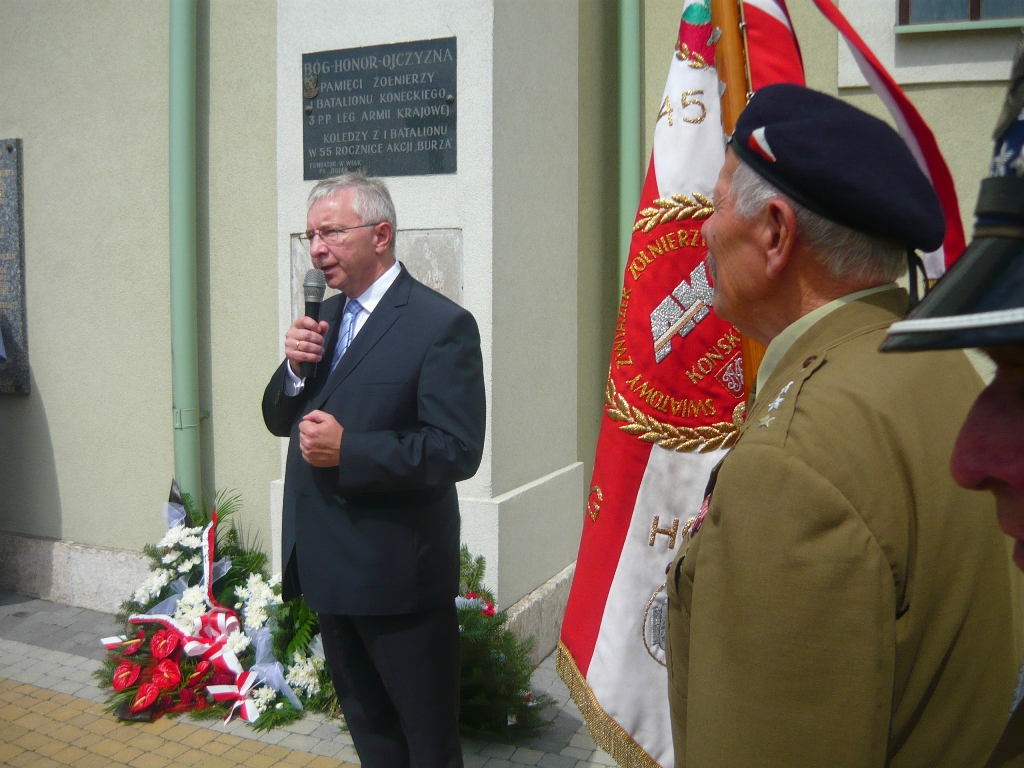 Uroczystości rozpoczęły się uroczystą Mszą świętą w kościele pod wezwaniem Świętej Anny w Końskich. Po nabożeństwie, pod tablicą upamiętniającą wynarsz na pomoc walczącej Warszawie złożono wiązanki kwiatów. Zwracając się do uczestników uroczystości poseł Krzysztof Lipiec powiedział m.in.: "Dziękuję nielicznym już niestety żołnierzom Armii Krajowej, uczstnikom wydarzeń sprzed 68 lat, za to że są wśród nas. W Waszej obecności dużo łatwiej kultywować nam pamięć, a kultywowanie pamięci jest dziś jedną z najważniejszych, patriotycznych powinności. Nie pozwolimy wmówić sobie, że jesteśmy - jakby tego chcieli niektórzy - tylko Europejczykami, bo my przede wszystkim czujemy się Polakami". Po zakończeniu uroczystości przy tablicy upamiętniającej wymarsz na pomoc walczącej Warszawie, poseł Krzysztof Lipiec w towarzystwie starosty koneckiego Bogdana Sobonia, wicestrosty Andrzeja Lenarta i członka zarządu powiatu koneckiego Danuty Leśniewicz złożyli wiązankę kwiatów przy tablicy upamiętniającej ofiary Tragedii Smoleńskiej z 10 kwietnia 2010 roku, która znajduje się na koneckim cmentarzu.