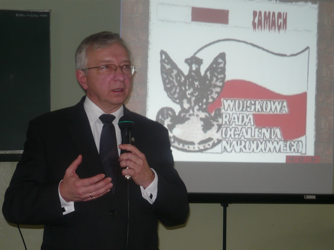 | Poseł Krzysztof Lipiec przyjął zaproszenie Stowarzyszenia "Wolni i Solidarni 1980-1989" na III Konkurs Historyczny pod nazwą "Orła WRONa nie pokona" zorganizowany dla młodzieży starachowickich szkół w 30 rocznicę wybuchu stanu wojennego. Patronat nad Konkursem objął Instytut Pamięci Narodowej. Dla wszystkich uczestników konkursu w nagrodę parlamentarzysta ufundował wycieczkę do Sejmu RP. |