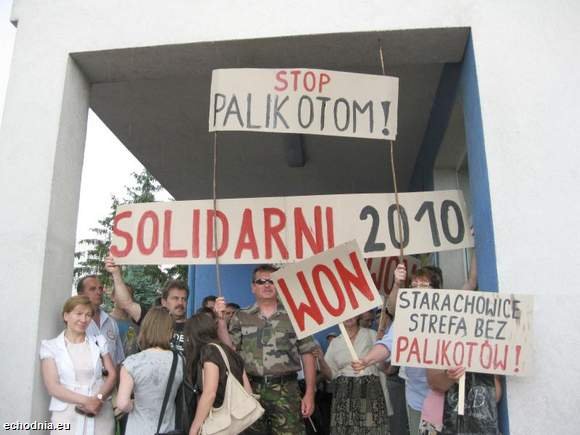 Starachowice. "Solidarni 2010" uchronili honor miasta wyrażając zdecydowany sprzeciw wobec osoby politykiera rodem z partii rządzącej wziętego, który zasłynął z publicznego ukazania protezy jednego ze swych organów. /fot. Echo Dnia/
