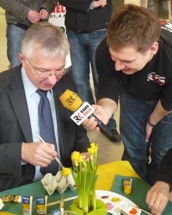 Kielce. Poseł Krzysztof Lipiec wział udział w "Malowanej Niedzieli" akcji charytatywnej zorganizowanej przez Radio Kielce i Echo Dnia. Parlamentarzysta namalował dwie pisanki, które będą przeznaczone na aukcję charytwtywną z której dochód będzie przeznaczony na zakup protezy dla pięciomiesięcznej Hani. |