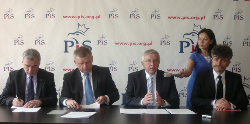 Kielce. Parlamentarzyści Prawa i Sprawiedliwości posłowie Krzysztof Lipiec, Jarosław Rusiecki, Andrzej Bętkowski i senator Krzysztof Słoń spotkali się z dziennikarzami na Konferencji Prasowej. Poseł Krzysztof Lipiec poinformował o incjatywie ustawodawczej Klubu Parlamentarnego dotyczącej nowelizacji prawa samorządowego polegającej na wprowadzeniu tzw. "kadencyjności wójtów" oraz wprowadzenia instytucji zawieszenia wójta w przypadku postawienia zarzutów karnych za przestępstwo umyślne ścigane z oskarzenia publicznego. Parlamentarzysta poinformował również o inicjatywie przeprowadzenia referendum ogólnokrajowego w sprawie niekorzystnego dla Polski, a wynegocjowanego przez rząd Donalda Tuska Pakietu Klimatyczno - Energetycznego. Posłowie skierują do Ministra Spraw Wewnętrznch interpelację w sprawie likwidacji posterunków Policji w województwie świętokrzyskim.