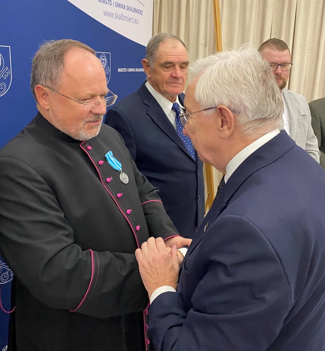 Skalbmierz. Uroczyste wręczenie Honorowej Odznaki dla osób zasłużonych dla Miasta i Gminy Skalbmierz. Miałem przyjemność odznaczyć Zasłużonych pośród których był Ksiądz Kanonik Marian Fatyga.