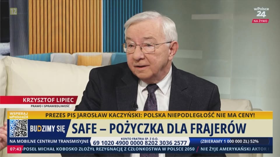📺"Budzimy się " wPolsce24 👉 to ważna dyskusja o tym, jak ogromnym zagrożeniem dla Polski jest 🛡 Program SAFE, z którego tak dumna jest koalicja 13 grudnia. 💬 W efekcie tej bardzo drogiej pożyczki, będącej zaprzeczeniem zasad patriotyzmu gospodarczego - o których realizację tak dbał 🇵🇱🛡premier Mateusz Morawiecki 👉która zdemoluje budżet MON 👉 nie będziemy mieli siły sprawczej, by dokonywać jak najlepszych zakupów dla polskiej armii. A to my powinniśmy decydować, a nie ci - z którymi kiedyś walczyliśmy. Bo to właśnie Niemcy najbardziej skorzystają na Programie SAFE - podkreśliłem. Dlatego w rozmowie z dziennikarskim duetem 📺 Małgorzatą Gałką 🤝 Mateuszem Pietrasikiem przypomniałem, że gdy w Sejmie dyskutowaliśmy o Programie SAFE, tą dyskusję ‼️śledził w Sejmie ambasador Niemiec. 💬 PO prostu ambasador pilnował swoich podwładnych w Polsce, by niczego nie skrewili w tej ważnej dla niego debacie - wyjaśniłem. W programie wróciliśmy do bardzo ważnych słów Prezesa Prawa i Sprawiedliwości Jarosława Kaczyńskiego 🇵🇱 NIEPODLEGŁOŚĆ NIE MA CENY🇵🇱 Patrząc na historię naszego Państwa, te słowa, my - Polacy, powinniśmy sobie wziąć głęboko do serca 🇵🇱🛡 /fb/KONTRAPUNKT RING WOLNY NA ANTENIE TVP INFO |