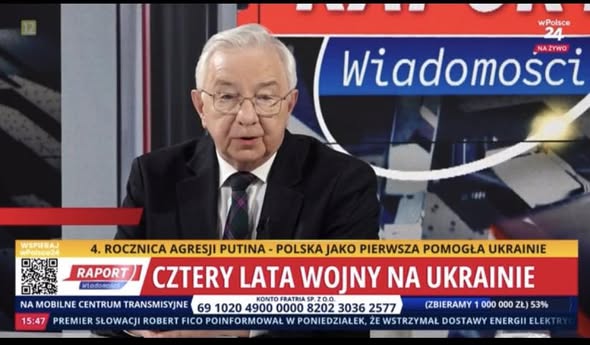 📺 Dzisiejszy Raport "Wiadomości" wPolsce24 to 🇵🇱🤝🇺🇦 ważna rozmowa o wielkim polskim wsparciu dla walczącej Ukrainy. 😪 W 4. rocznicę agresji Putina na Ukrainę, podkreśliłem, że to Polska jako pierwsza pospieszyła z pomocą. 👉Przypomniałem ważne działania Premiera Jarosława Kaczyńskiego, silne wsparcie na wielu płaszczyznach z inicjatywy Pana Premiera. 👉 Przypomniałem ogromne zaangażowanie Premiera Mateusza Morawieckiego. 💬 Mam takie przekonanie, że ten konflikt zakończy się zwycięstwem Ukrainy i przegraną Rosji 👉 bo taka jest sprawiedliwość dziejowa - oceniłem, podkreślając, że trzeba było 🇺🇸 Prezydenta Donalda Trumpa, by wreszcie zaczęto mówić o rokowaniach pokojowych. /fb/ TV wPolsce24POLSKI ŁAD DZIAŁA |