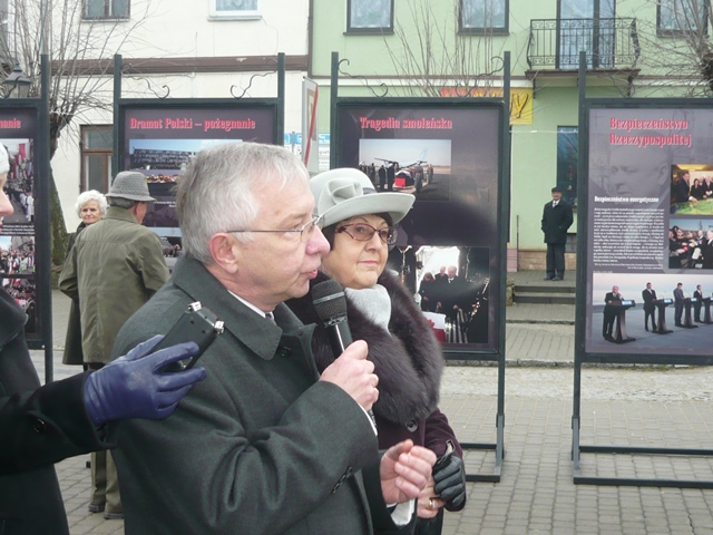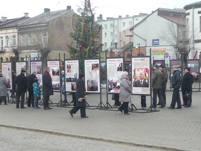 Opatów. Na opatowskim Rynku miał miejsce wernisaż wystawy poświęconej życiu i działalności publicznej prezydenta Lecha Kaczyńskiego "Warto być Polakiem". Uroczystego otwarcia wystawy dokonali posłowie Krzysztof Lipiec, Maria Zuba i Jarosław Rusiecki razem z burmistrzem Opatowa Andrzejem Chanieckim i miejscowym proboszczem ks. prałatem dr Michałem Spocińskim. Sekretarz świętokrzyskiego PiS Andrzej Pruś odczytał list Jarosława Kaczyńskiego prezesa PiS. "Warto być Polakiem to przesłanie zaczerpnięte z bogatego dorobku myśli politycznej prezydenta Lecha Kaczyńskiego, który całym życiem służył Ojczyźnie" - powiedział m.in. poseł Krzysztof Lipiec otwierając wystawę. Wcześniej w opatowskiej Kolegiacie Ksiądz Prałat odprawił Mszę Świętą podczas której modlono się za Prezydenta Lecha Kaczyńskiego i pozostałych poległych pod Smoleńskiem w katastrofie rządowego samolotu. Wystawę w Opatowie przygotowali miejscowi działacze Prawa i Sprawiedliwości na czele z Tomaszem Sańkiem przewodniczącym Rady Miejskiej. Opatów jest 16 miejscowością w regionie na trasie projektu świętokrzyskiego PiS, gdzie zgłębiamy myśl polityczną śp. Prezydenta RP Lecha Kaczyńskiego.