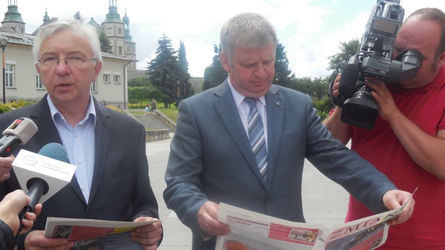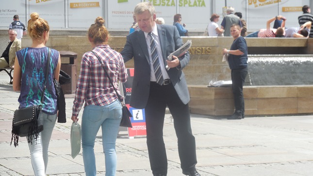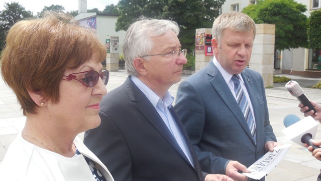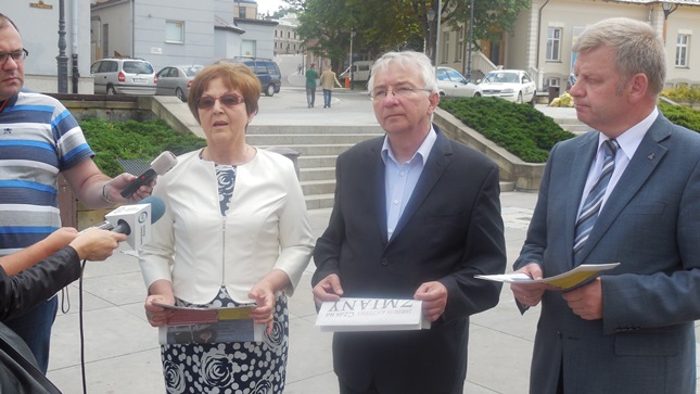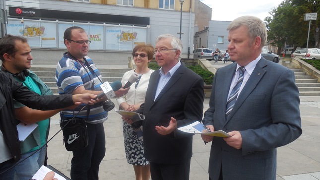 Kielce. Posłowie Prawa i Sprawiedliwości Maria Zuba, Jarosław Rusiecki i Krzysztof Lipiec w kolejnej edycji Politycznego Placu Artystów w ramach kampani "Czas na zmiany" rozmawiali z Wyborcami i przekazywali im gazetkę Prawa i Sprawiedliwości wydaną na okoliczność ujawnienia Taśm Prawdy. Wcześniej podczas briefingu prasowego poseł Krzysztof Lipiec poinformował o niedzielnej akcji PiS w której parlamentarzyści odwiedzili miasta powiatowe w świętokrzyskim spotykając się z ludzmi, gdzie informowano o działaniach Prawa i Sprawiedliwości w związku z aferą taśmową. "Nie pozwolimy tej afery zamieść pod dywan" - powiedział m.in. poseł Krzysztof Lipiec. Lider świętokrzyskiego PiS poinformował, że kandydatem na senatora w uzupełniających wyborach do Senatu RP w okęgu obejmującym powiaty: skarżyski, starachowicki, ostrowiecki, opatowski i sandomierski jest poseł Jarosław Rusiecki.