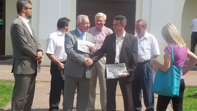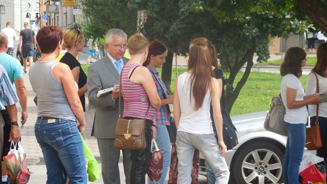 Staszów. „Czas na zmiany” - krzyczy tytuł biuletynu Prawa i Sprawiedliwości, który w poniedziałek politycy rozdawali na Rynku mieszkańcom Staszowa. To były jednocześnie najczęściej padające sowa z ust Krzysztofa Lipca świętokrzyskiego posła Prawa i Sprawiedliwości, który wziął udział w konferencji prasowej pod Ratuszem w Staszowie. W spotkaniu uczestniczyli także: senator Mieczysław Gil, Grzegorz Forkasiewicz szef powiatowych struktur Prawa i Sprawiedliwości w powiecie staszowskim, który jest jednocześnie wójtem Rytwian oraz sekretarz świętokrzyskiego PiS Andrzej Pruś. Podczas spotkania Grzegorz Forkasiewicz szef struktur powiatowych Pis – u przedstawił: kandydata na burmistrza Staszowa Leszka Kopcia, kandydata do sejmiku wojewódzkiego Józefa Małobęckiego oraz dwóch kandydatów do Rady Powiatu w Staszowie: Roberta Wyrazika i Wacława Słodkowskiego, który zasiada w Radzie Powiatowej obecnej kadencji. /Echo Dnia/