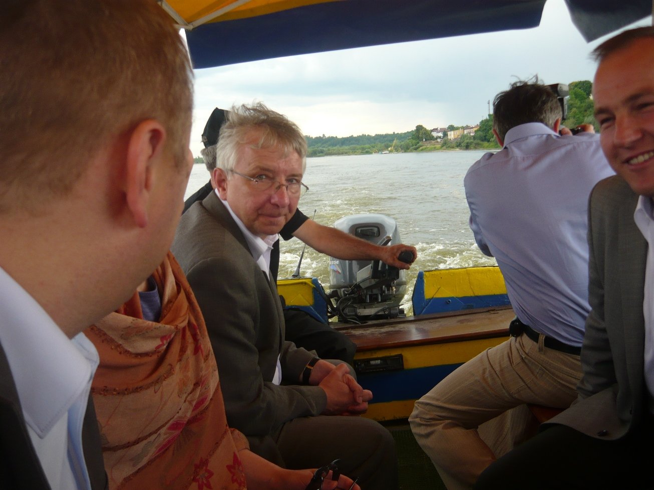"To jest łabędź, który powstał z brzydkiego kaczątka, a ja szczególnie lubię Kaczory i właśnie dlatego uważam za najładniejszy właśnie ten wianek" - powiedział poseł Krzystof Lipiec wręczając ufundowanę przez siebie nagrodę Magdalenie Rzeszótek, która została laureatką konkursu wianków podczas Pikniku Zawichojskiego. |