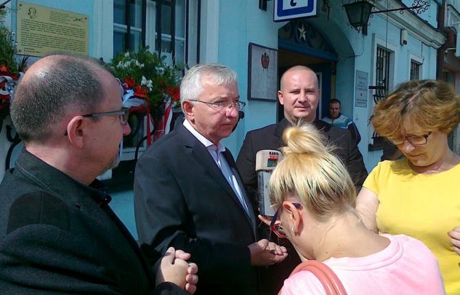 Sandomierz. Razem z przewodniczącym Klubu Parlamentarnego Prawa i Sprawiedliwości Mariuszem Błaszczakiem wspieraliśmy w wyborach uzupełniających do Senatu naszego kandydata posła Jarosława Rusieckiego. Najpierw briefing prasowy na sandomierskim Rynku. - Prawo i Sprawiedliwość będzie zabiegać o wprowadzenie rocznego odroczenia spłaty kredytów dla rolników, poszkodowanych wskutek rosyjskiego embarga. Na najbliższym posiedzeniu Sejmu ma być przedstawiona inicjatywa ustawodawcza - zapowiedział Mariusz Błaszczak. W drodze na Zamek Królewski spotkaliśmy wielu życzliwych nam ludzi. Na Zamku uczestniczyliśmy w Jubileuszu 70-lecia urodzin Mistrza Rzemiosła Artystycznego Cezarego Łutowicza. Następnie wyjazd do Koprzywnicy na spotkanie z Wyborcami. Stamtąd powrót do Sandomierza, aby porozmawiać z mieszkańcami królewskiego miasta. /fb/