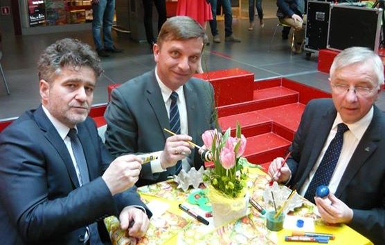 Kielce. Kilkadziesiąt znanych w regionie osób wsparło akcję "Malowana niedziela” w Galerii Echo organizowaną przez "Echo Dnia" i Galerię Echo. Pośród nich był poseł Krzysztof Lipiec z sekretarzem świętokrzyskiego PiS Andrzejem Prusiem, który kandyduje na prezydenta Starachowic. Do nich dołączył senator Krzysztof Słoń. Do chorych dzieci trafi ponad 13 tysięcy złotych. Poseł Krzysztof Lipiec namalował pisankę. Jak na polityka przystało dzieło przez niego dokonane nosiło też polityczne znamiona. Jajko zostało pomalowane w barwach czerwono - granatowych i zostało po prostu podpisane "PiSanka". Ponad to stwierdzić należy, że pan poseł zasilił skarbonę należnym datkiem, a namalowaną "PiSankę" zostawił do licytacji. Andrzej Pruś jako kibic Staru Starachowice, jajko pomalował w klubowych barwach na zielono - czarno. Senator Krzysztof Słoń na jajku namalował słonia świętokrzyskiego.NA MECZU PIŁKARSKIM STAR-u STARACHOWICE |