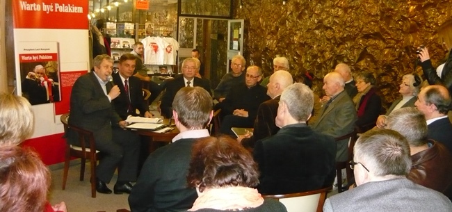 Starachowice. W Miejskiej Bibliotece Publicznej z inicjatywy Andrzeja Prusia kandydata na prezydenta Starachowic odbyła się prezentacja albumu "Prezydent Lech Kaczyński. Warto być Polakiem". Spotkanie promocyjne poprowadził kielecki aktor Przemysław Predygier. Swoimi refleksjami o Prezydencie Lechu Kaczyńskim podzielił się Andrzej Pruś, który wspominał działalność prezydenta w Solidarności. Poseł Krzysztof Lipiec podsumował projekt realizowany przez świetokrzyski PiS "Warto być Polakiem" w ramach którego wystawa o życiu i publicznej działalności Prezydenta odwiedziła 30 miejscowości w regionie. Andrzej Pruś na pamiątkę tego spotkania na ręce dyrektoea Biblioteki pani Anny Gębskiej przekazał prezentowany album.KIELECKA PROMOCJA ALBUMU PREZYDENCKIEGO |