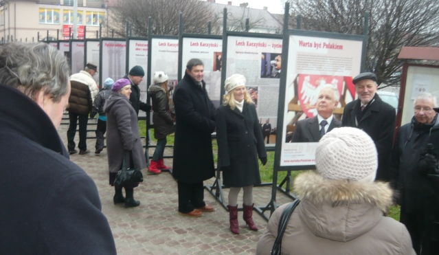 Staszów. Po Mszy Świętej za Ojczyznę sprawowanej w kościele Św. Ducha, na staszowskim Rynku odbył się wernisaż wystawy "Warto być Polakiem" poświęconej życiu i działalności publicznej śp. Prezydenta RP Lecha Kaczyńskiego. W uroczystości uczestniczyli senator Mieczysław Gil i poseł Krzysztof Lipiec. Wystawa w Staszowie została zorganizowana staraniem panów Józefa Małobędzkiego i Tadeusza Żmudy delegatów na Kongres Prawa i Sprawiedliwości.