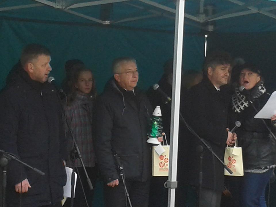 Kielce. Na zaproszenie harcerzy Kieleckiej Chorągwi Związku Harcerstwa Polskiego i kieleckiej redakcji Gazety Wyborczej parlamentarzyści Prawa i Sprawiedliwości przybyli na kielecki Rynek na wspólne kolędowanie z mieszkańcami stolicy regionu. Posłowie Krzysztof Lipiec i Jarosław Rusiecki oraz senator Krzysztof Słoń otrzymali od harcerzy Betlejemskie Światło Pokoju. Poseł Krzysztof Lipiec przekazał mieszkańcom Kielc życzenia świąteczne od Prawa i Sprawiedliwości. Wspólnie odśpiewano kolędę "podnieś rękę Boże Dziecię, błogosław Ojczyznę miłą".ŚWIĘTOKRZYSKI ZARZĄD OKRĘGOWY PiS |